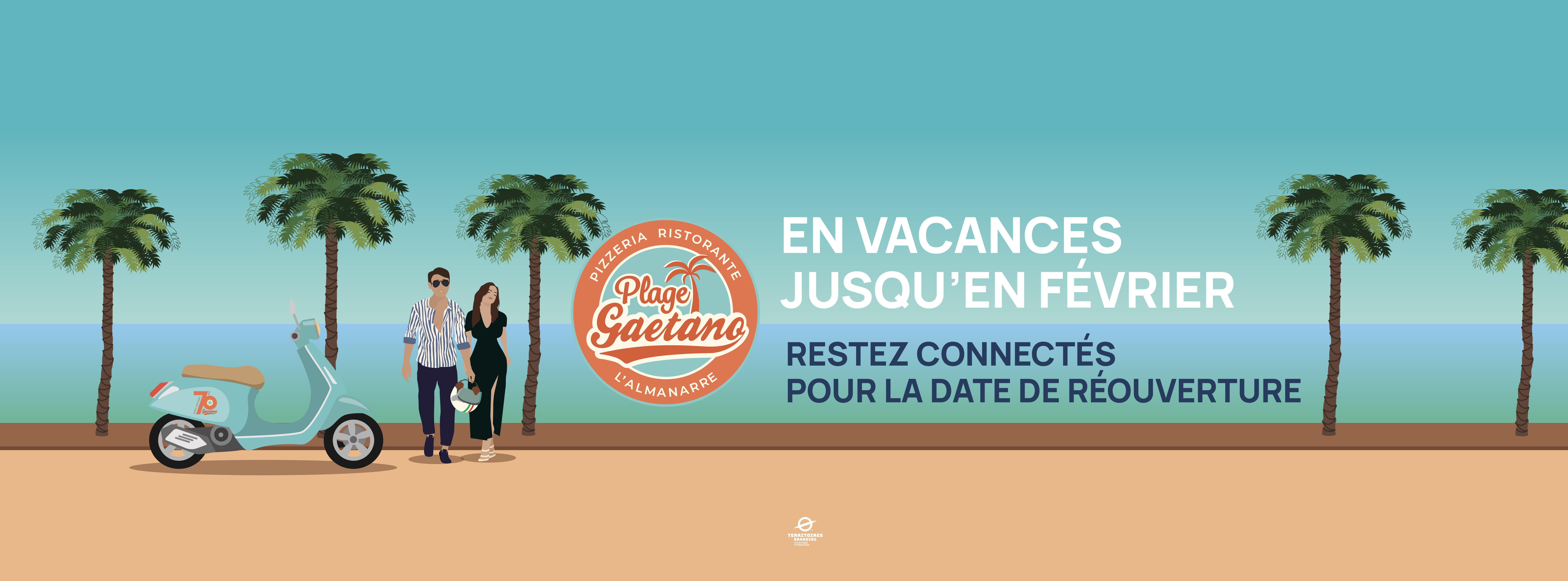 Plongez dans l’univers Gaetano Plage ! La mer comme seule horizon, voilà ce qui nous a animé dans la rénovation du restaurant. L’Italie des années 50, date à laquelle la famille s’installe dans le Var; l’ambiance plage et dolce vita reprenant ainsi les motifs des plages de Rimini ou encore les symboles de la ville d’Hyères comme le palmier. Installez-vous, appréciez la vue et laissez-nous vous régaler avec nos recettes authentiques et notre savoir-faire.